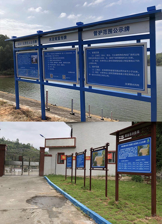 廣東省河湖及水利工程河湖管理范圍及水利工程管理與保護范圍劃界工作這2年已大力開展,我司有幸成為其中的一員,為廣東省河湖及水利工程盡一點綿薄之力。我司著力于河湖水庫工程的標(biāo)準(zhǔn)化建設(shè)及水庫標(biāo)識標(biāo)牌項目產(chǎn)品的生產(chǎn)、制作、及施工安裝。2020年我司前后完成了珠海市水庫標(biāo)識標(biāo)牌項目(珠海市香洲區(qū)、高新區(qū)、高欄港區(qū)、萬山區(qū)、水控集團)管轄范圍內(nèi)的水庫標(biāo)識牌項目;韶關(guān)市河湖水庫標(biāo)識牌項目;清遠市河湖水庫標(biāo)識標(biāo)牌項目;陽江市河湖水庫標(biāo)識標(biāo)牌項目;江門市河湖水庫標(biāo)識標(biāo)牌項目;廣州市河湖水庫標(biāo)識標(biāo)牌項目;佛山市河湖水庫標(biāo)識標(biāo)牌項目;肇慶市河湖水庫標(biāo)識標(biāo)牌項目;惠州市河湖水庫標(biāo)識標(biāo)牌項目;河源市河湖水庫標(biāo)識標(biāo)牌項目;深圳市河湖水庫標(biāo)識標(biāo)牌項目;以及汕頭揭陽地區(qū)的河湖水庫標(biāo)識標(biāo)牌項目。